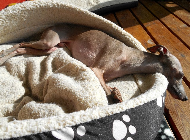 Gilly har gett upp det blev för varmt och kvar blev mina två soldyrkare och jag!